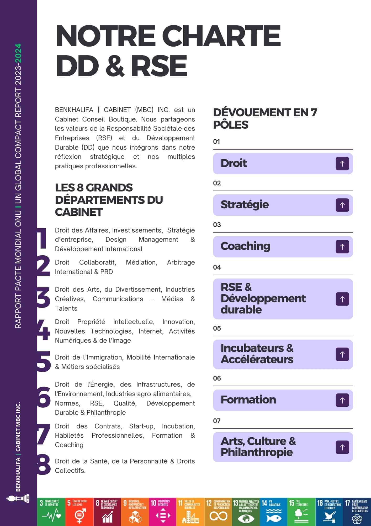 BENKHALIFA | CABINET MBC INC. s’est engagé envers 12 des 17 Objectifs de Développement Durable (ODD) comme communiqué dans le Rapport du Pacte Mondial des Nations Unies 2020.